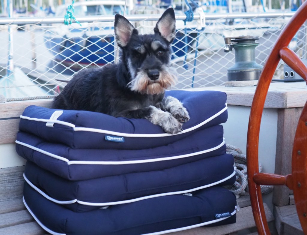 En dan natuurlijk niet te vergeten scheepshond DUCA, een bijna 11 jaar oude opvolgster van Schnauzer MAX, die tot en met haar 16e levensjaar nog mee aan boord ging.