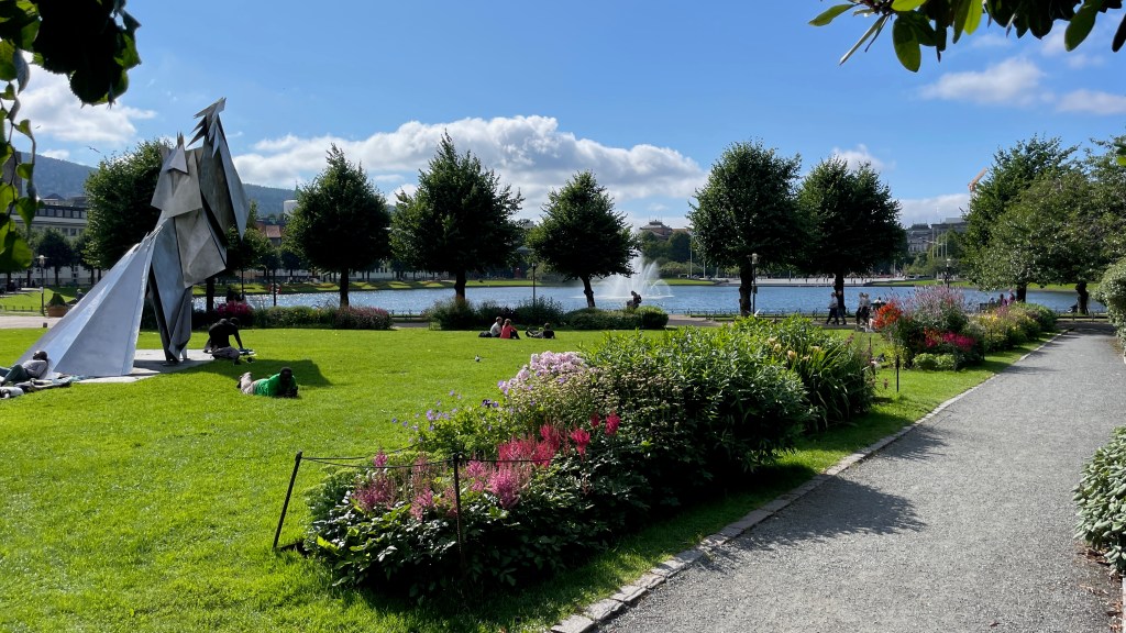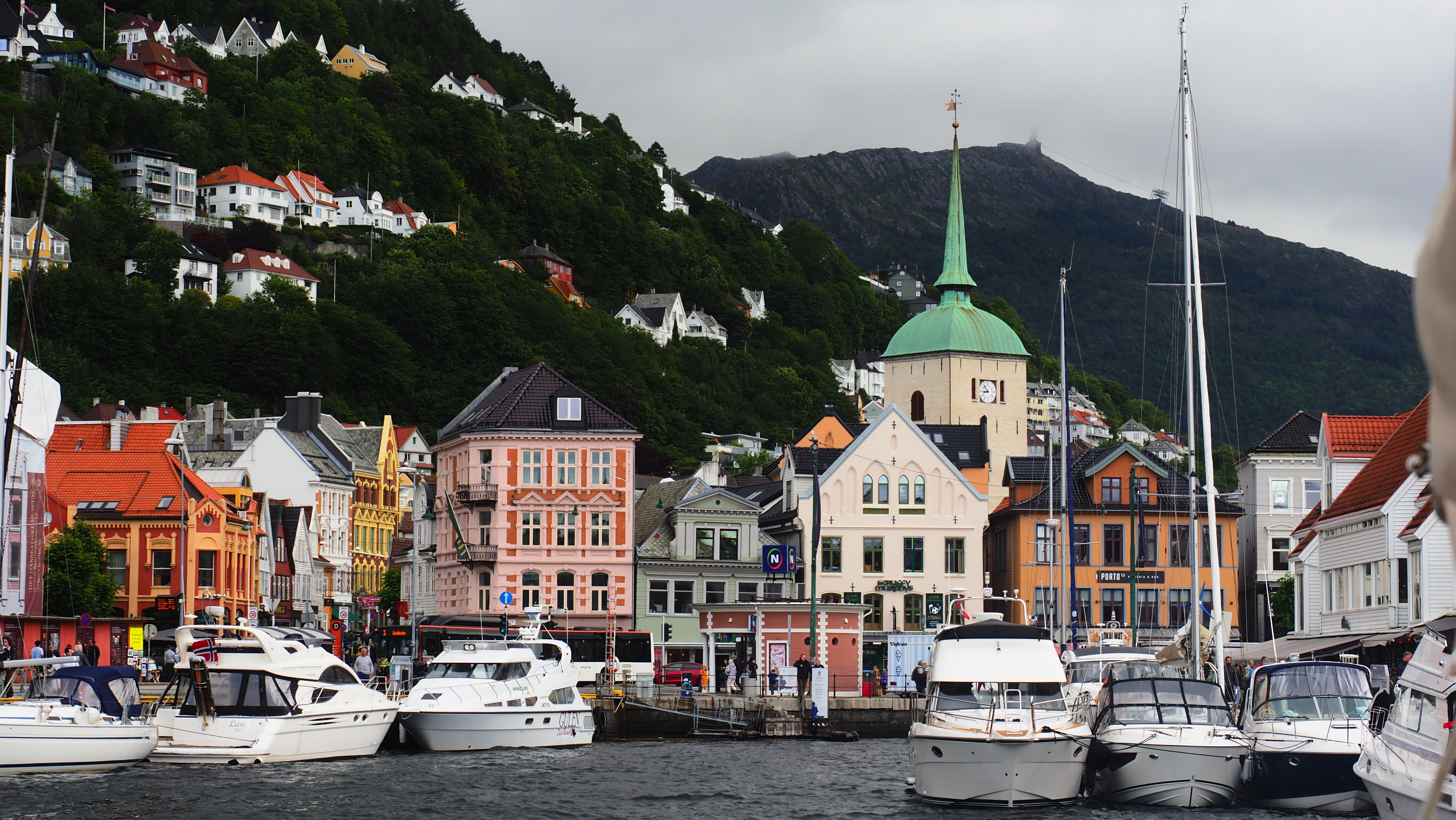 De cruiseschepen spugen een aantal keren per dag een toeristen uit en die komen allemaal langs de boot, maar gelukkig niet zoveel herrie overlast als in Haugesund en ook geen harde muziek. Bergen is prachtig én zonnig deze dagen. We doen klusjes: naar de vestiging van Maritim om nieuwe patronen voor mijn reddingsvest te kopen. Ik gleed gisteren uit bij een strandje en ging kopje onder. Gek gevoel als het vest opblaast. Direct ook maar even gezwommen om te testen hoe dat voelt. Goeie oefening want zwemmen is lastig, meer peddelen op mijn rug. Mijn iPhone en mijn Cartier horloge hebben de duik overleeft gelukkig.
