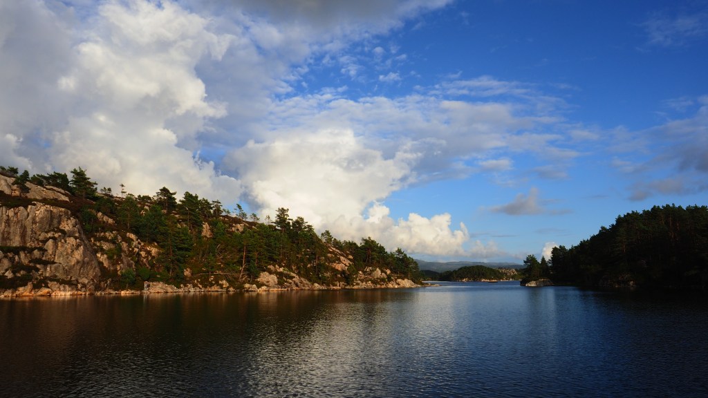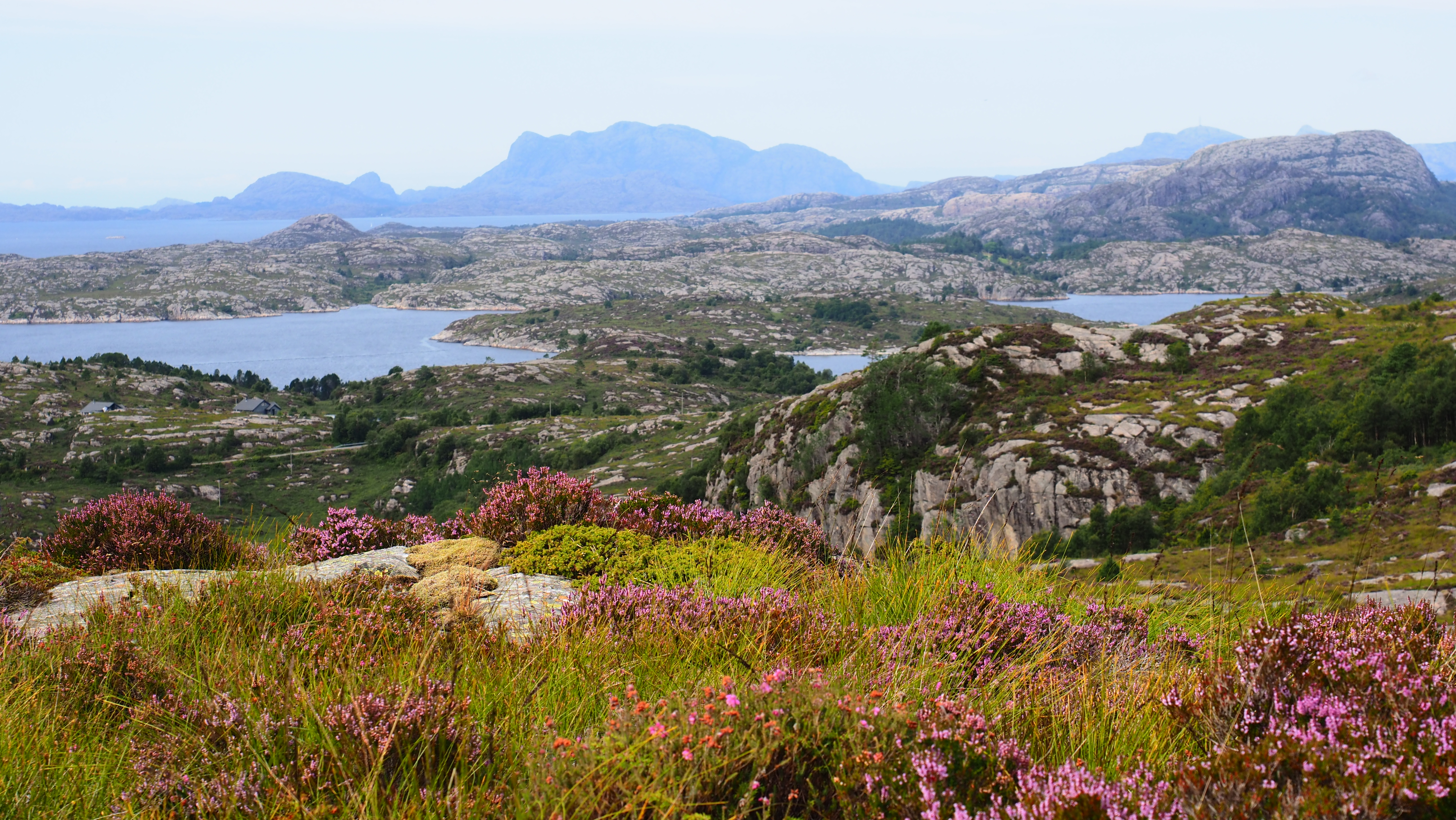 Vandaag hier nog zonnig en een mooie wandeling gemaakt. Ik merk dat ik best wel wat zenuwachtig was voor een echter wandeling. Ik wil niet weer zoals in Mandal aan het eind flauwvallen. Dus beter voorbereid: bergschoenen aan, stokken mee, wat te eten en water genoeg. Het is echt prachtig en een eenvoudig pad. Toch besluit ik 40 meter onder de top van 165 meter niet verder te gaan en te rusten. Ook vanaf deze plek is het uitzicht al mooi. Meine gaat wel verder en hij is er snel. Misschien ben ik wel te voorzichtig, maar ik lees zo vaak over ongelukken op Facebook van vrienden die net een misstap maken. Nu is er een regenboog te zien dus ergens valt regen!
