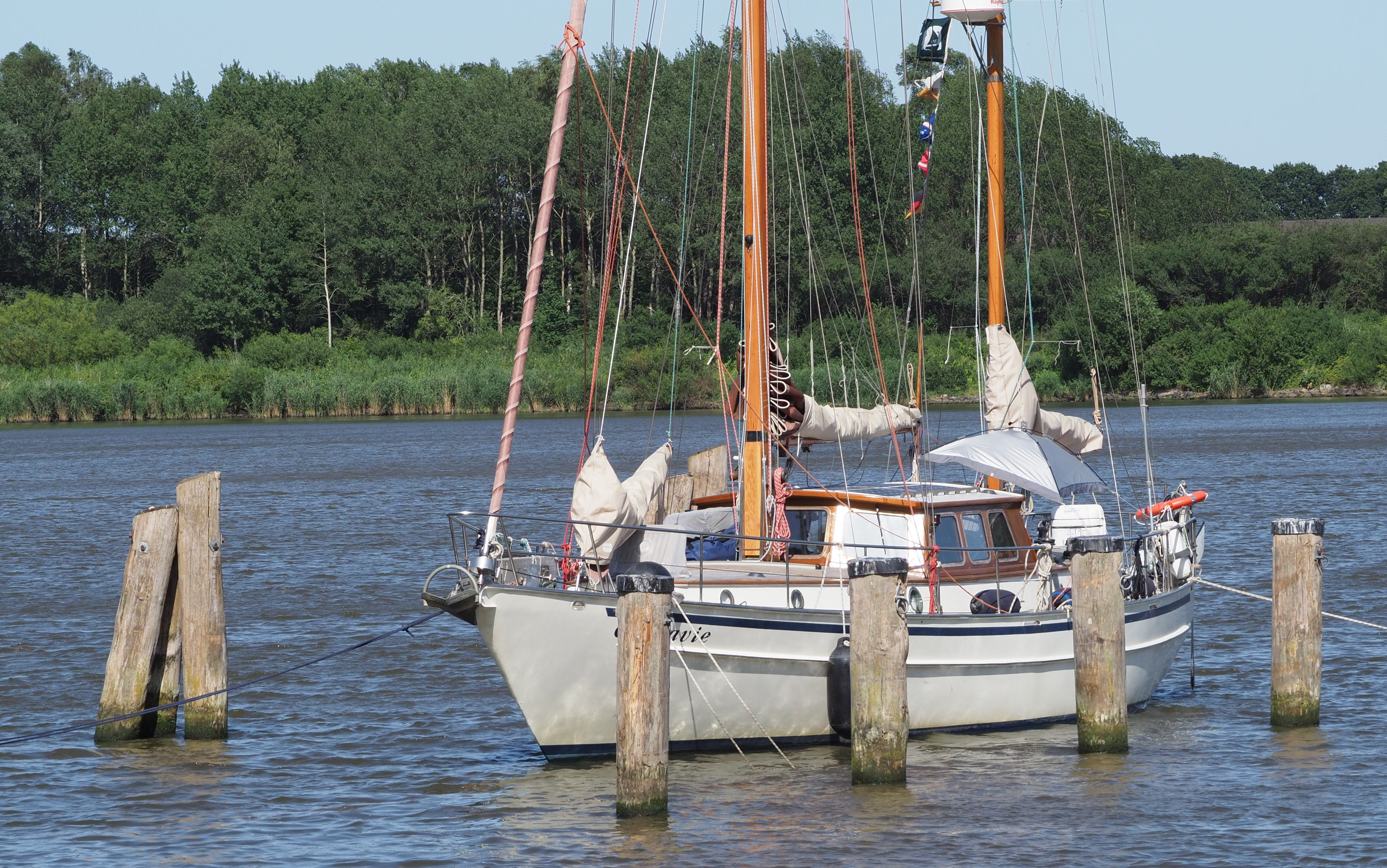 Er liggen wat jachten met een achteranker aan de steiger, maar dat wil Meine voorlopig niet meer. In Landsort heeft hij zijn rugspieren verrekt, omdat ons achteranker sowieso heel zwaar is en met een grote klomp klei al helemaal niet binnen te halen is. Hier moeten we nog iets op bedenken.